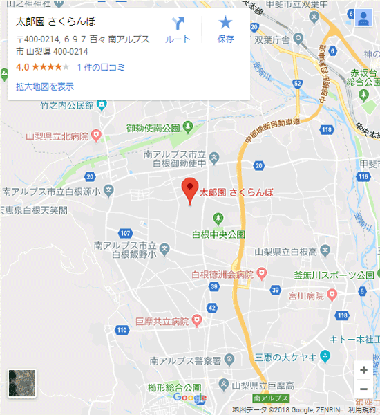 コード検索が出来ない時は住所検索にて【山梨県南アルプス市百々286番地】到着しましたら 090-1656-4231まで連絡ください農園まで案内します。 |