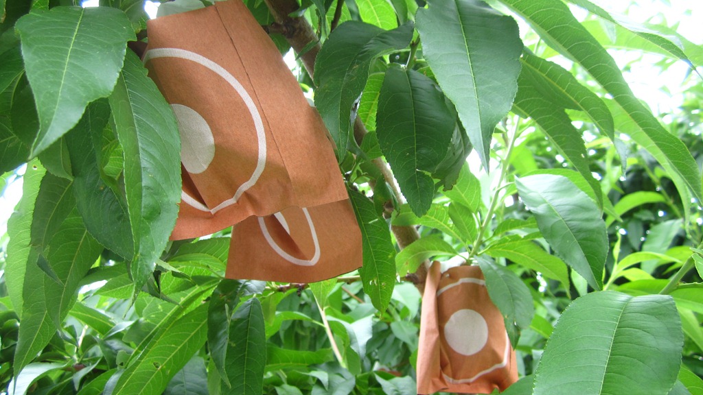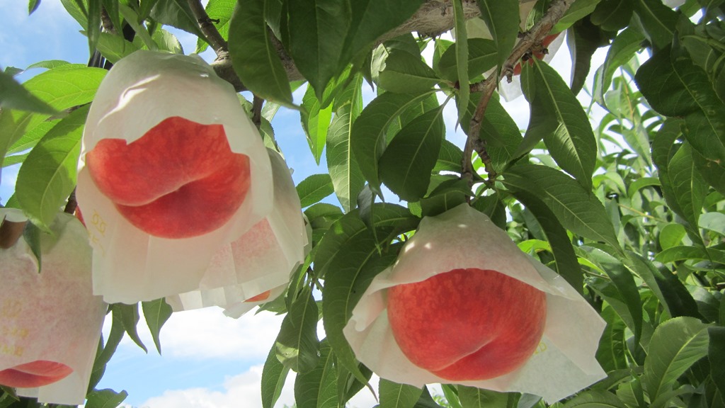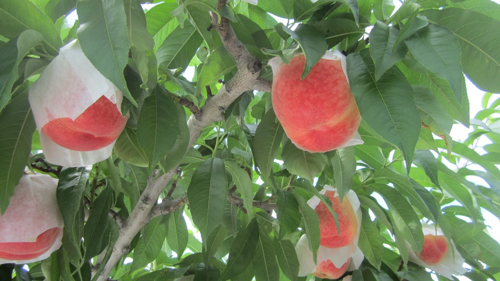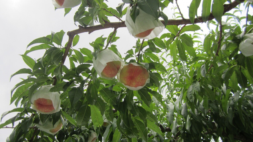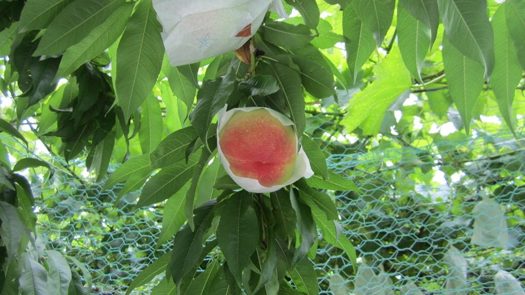 川中島 : 袋の中は、ピンポン玉より少し小さめ収穫は8月に入ってからです。