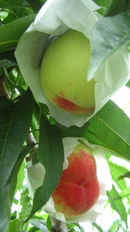 白鳳 : あかつきと同じくらいのソフトボール大です、7月10日過ぎごろからは収穫が始まります。