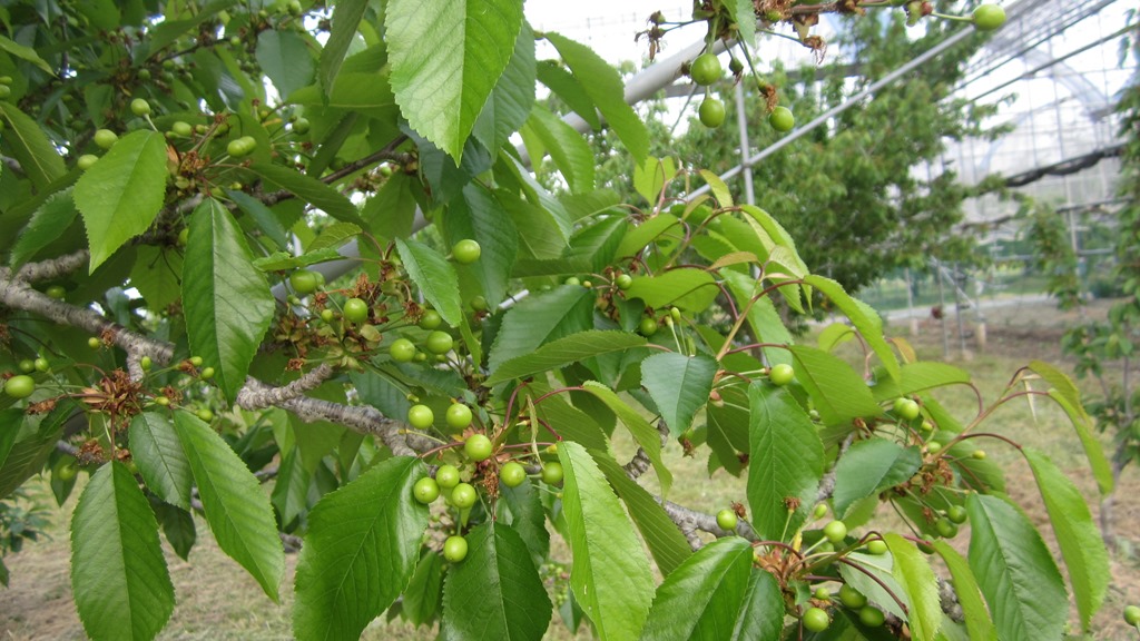 太郎園トップページ > さくらんぼ畑を見に行く > さくらんぼの実が大豆くらいの大きさになりました。