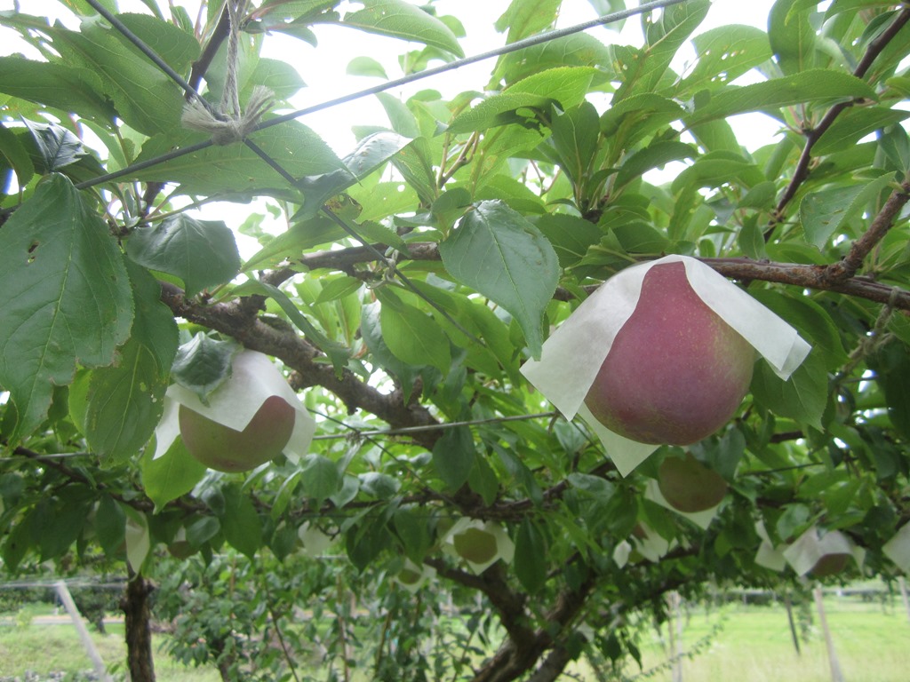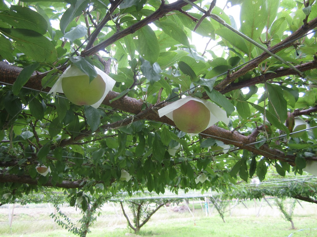傘を被った成長途中です。収穫は7月末からでしょうか?
