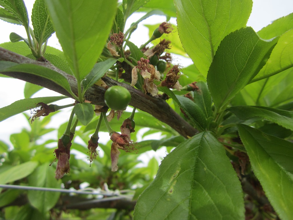 貴陽 : 結実した実が膨らんできました、花の時期の天候が良かったためか結実率は良い。